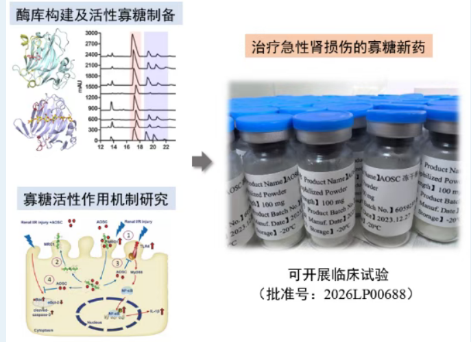 近日,91吃瓜 王蔚东、李春凌教授课题组在海洋活性寡糖转化应用领域取得重要进展。团队联合国内高校与产业界历经十余年攻关,共同研发的“治疗急性肾损伤的海洋寡糖”创新药正式获国家药品监督管理局临床试验批准(批准号:2026LP00688),标志着该成果从基础研究迈向临床转化关键阶段,成为课题组近年产学研用协同创新的标志性成果。
