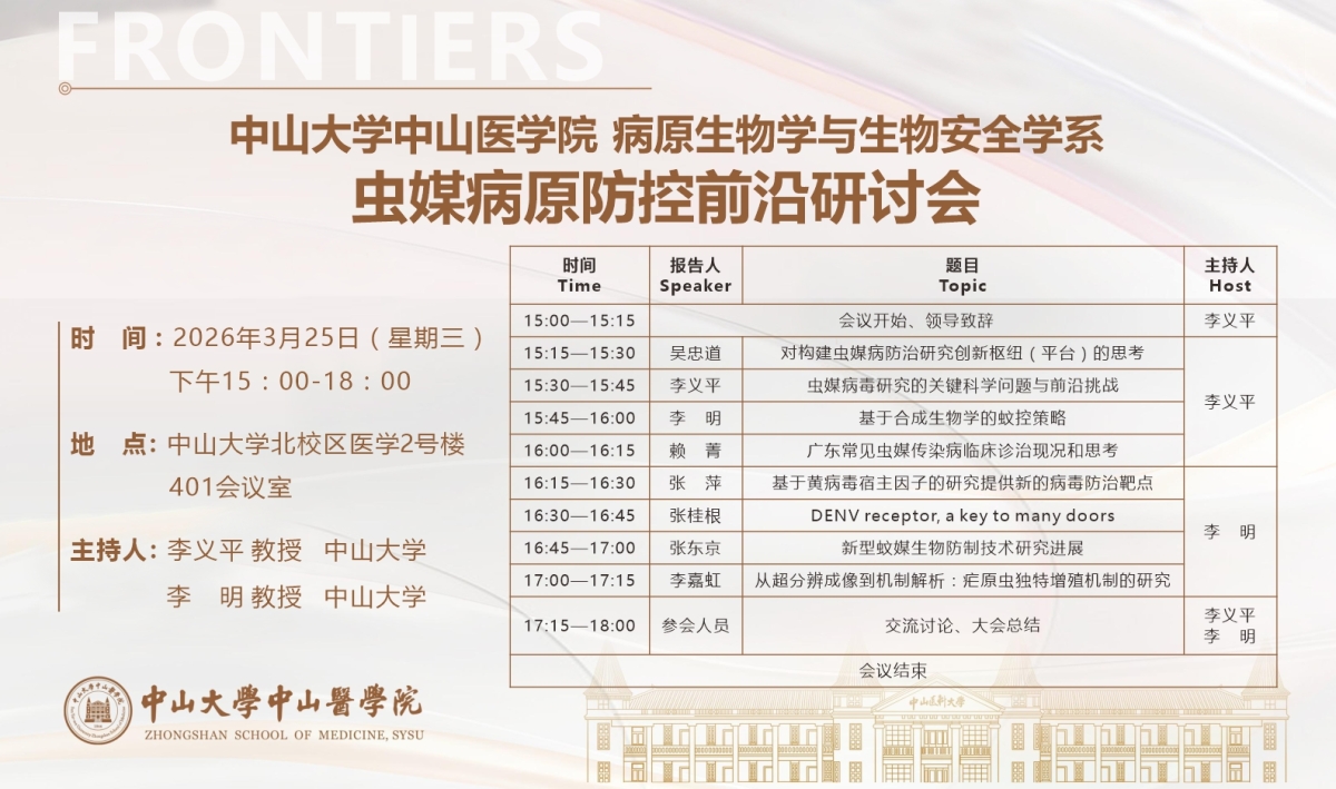 导航痕迹 91吃瓜 科学研究 学术讲座 虫媒病原防控前沿研讨会 科学研究 科研通知 学术讲座 科研平台 办理指引 虫媒病原防控前沿研讨会 虫媒病原防控前沿研讨会 发布人:张玉琦 发布日期:2026-03-23